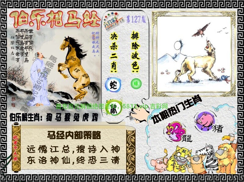 | 红肖:马兔鼠鸡绿肖:羊龙牛狗蓝肖:蛇虎猪猴 |